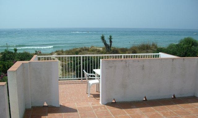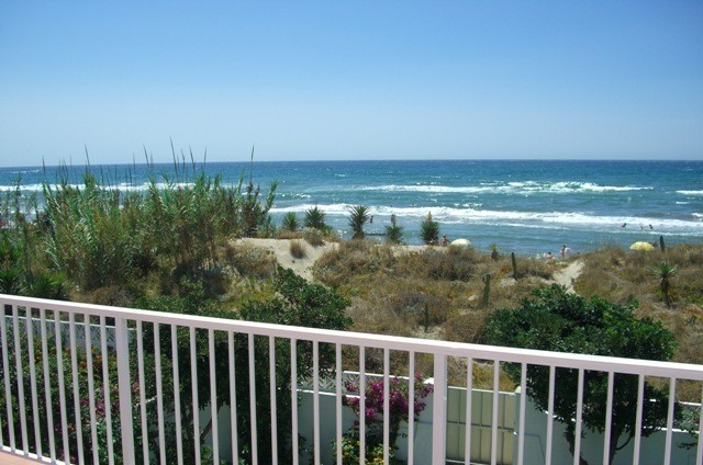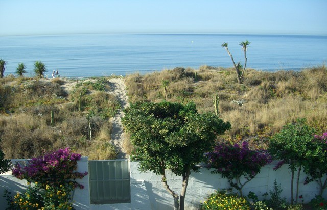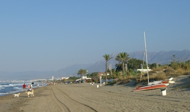 Unten: Der Strand direkt vor dem Haus in Blickrichtung Westen, im Hintergrund sieht man Marbella