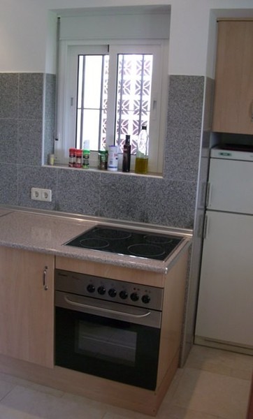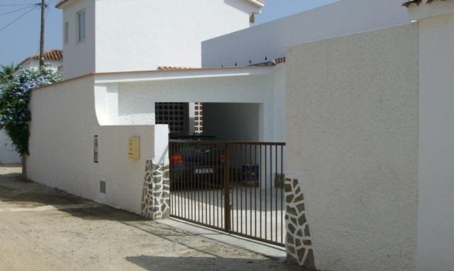Von der Calle Picasso aus sieht man den Hinterhof mit Garage. Durch die Mauer auf der Nordseite und den großen Hinterhof ist man ungestört von der