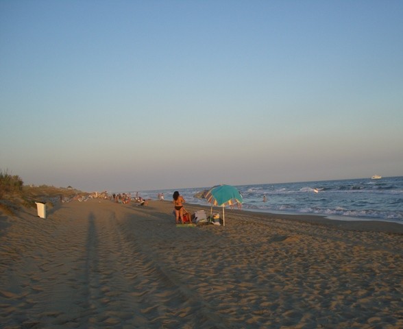 Treiben auf dem breiten Sandstrand, der direkt hinter der Düne liegt. Im Frühling blühen hier zwischen einigen Yukka- Palmen die weißen Strandlillien.